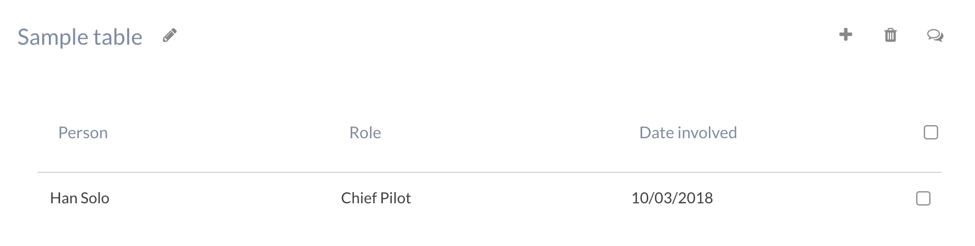 This table is using the Resource type for the Person column, the Text type for the Role column, and Date type for the Date involved column.