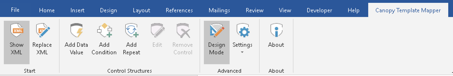 When setting up Word templates, we recommend Design Mode be enabled as it helps with being precise from a data point insertion perspective. However, it can be helpful to turn it off when you want to review general layout and styling.