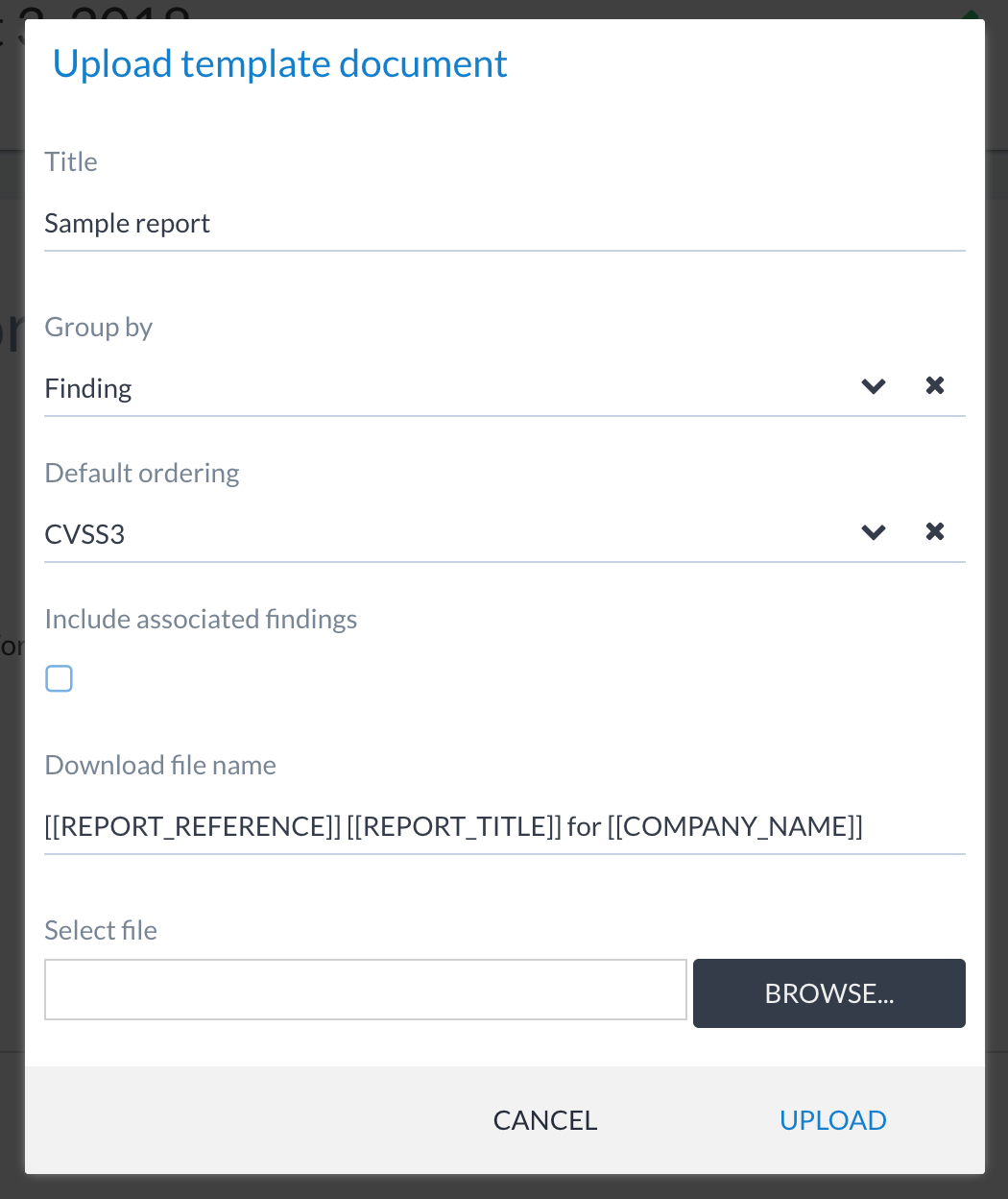 When the Word template is set up to include the data points that should be populated from Canopy, it then needs to be uploaded to Canopy so other users can use it for report generation.