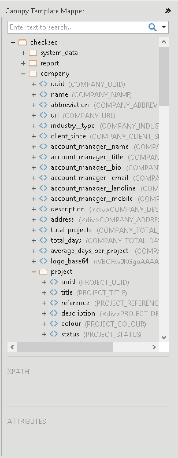 Data stored in Canopy can be linked (mapped) to Word documents using the Canopy Word plugin. This can be downloaded from the CheckSec Portal. If you need access, please contact support via https://support.checksec.com.
