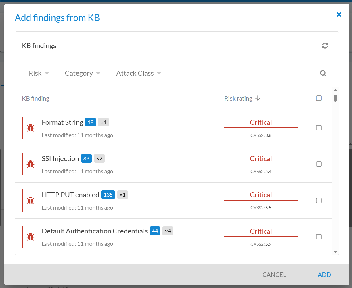 Select the findings you want to add to the phase. It is possible to filter and multi-select.
