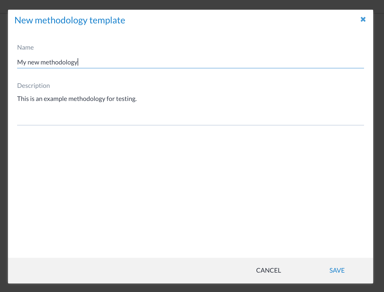 Form for creating a new methodology template with title and description fields