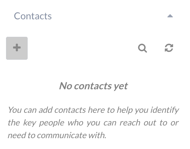 It may be desirable to associate contacts with a project, so users have a list of people who can be contacted for support, etc. This can be achieved through the contacts list on the main project view: