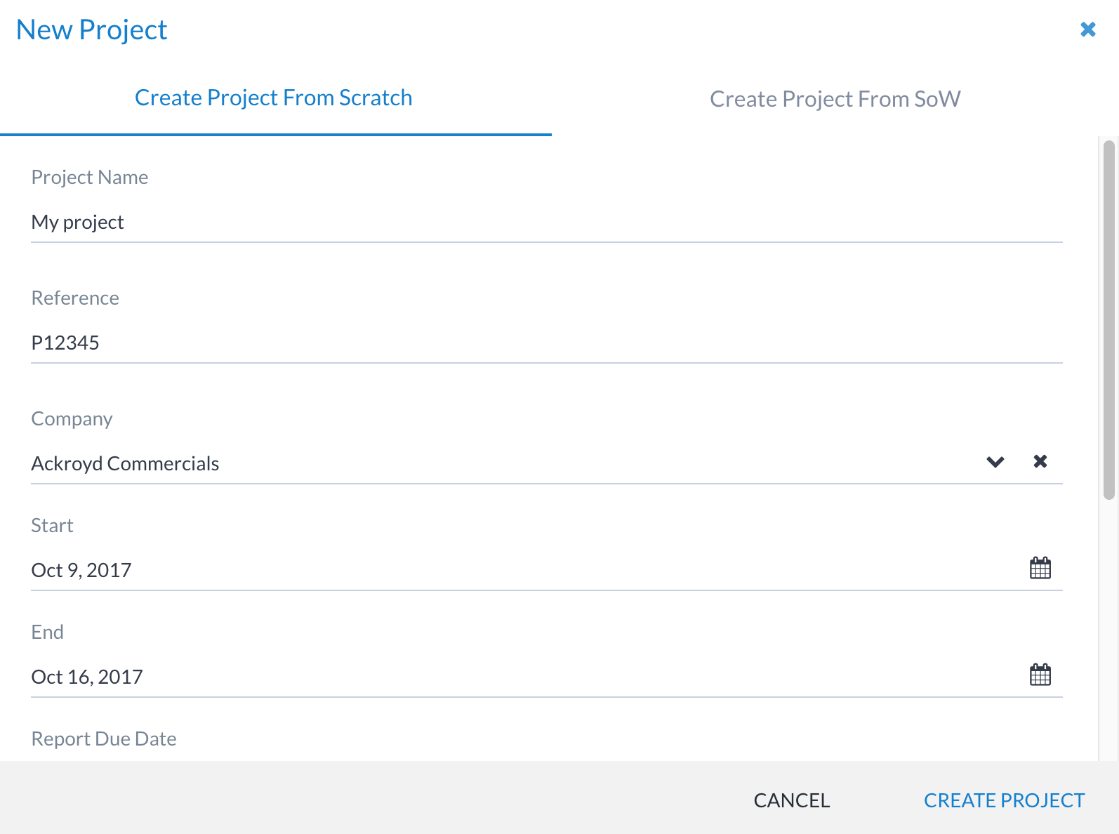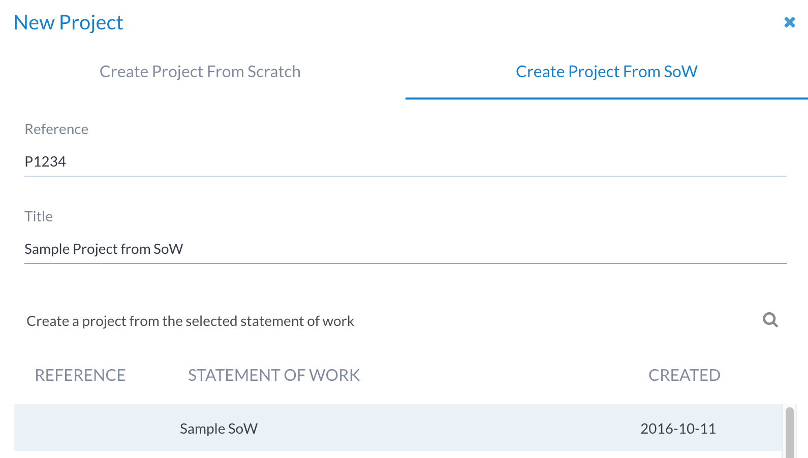 It is also possible to add a project from a SoW - either from the SoW view or from the New Project window: