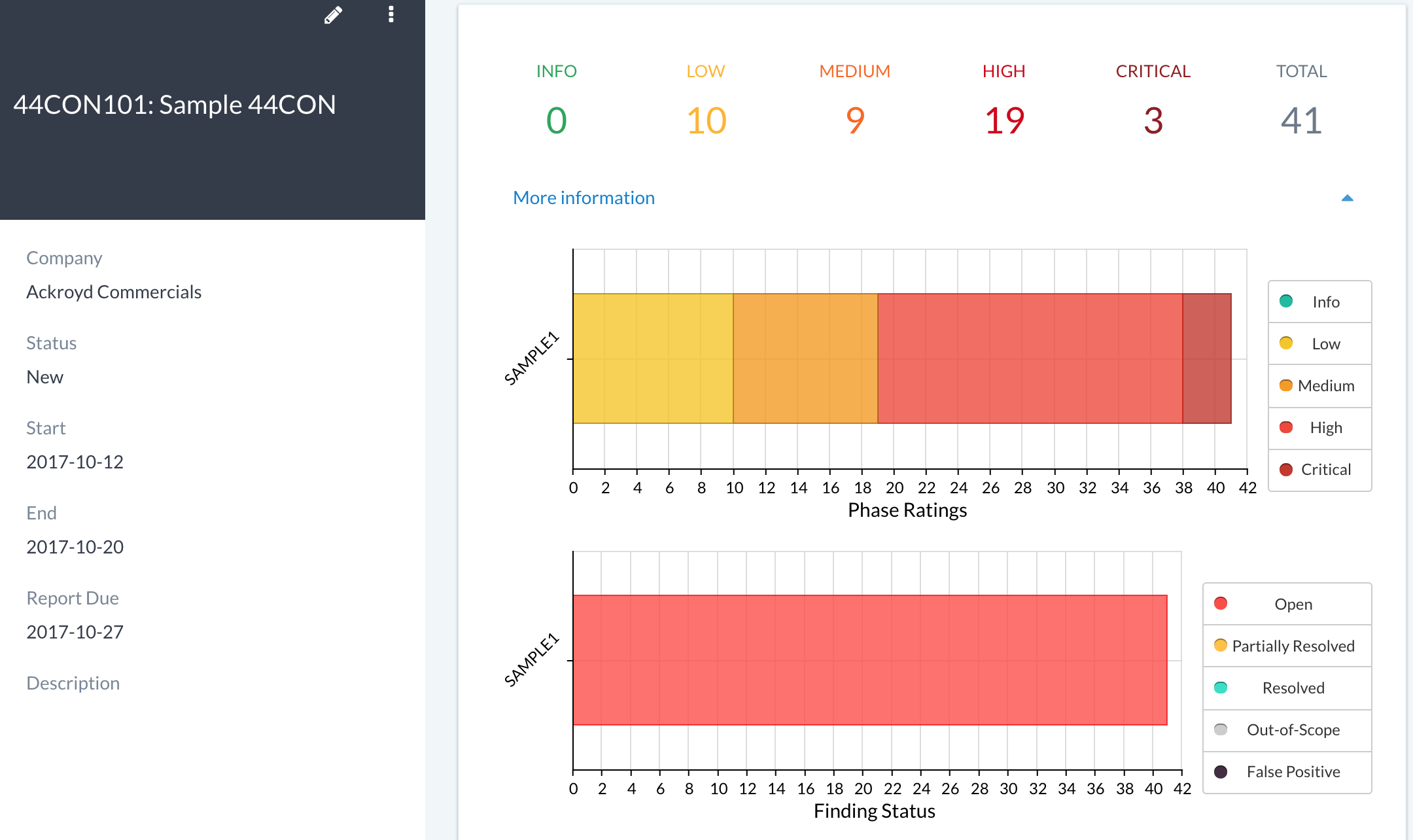 State of findings per phase (useful for tracking progress during re-tests)
